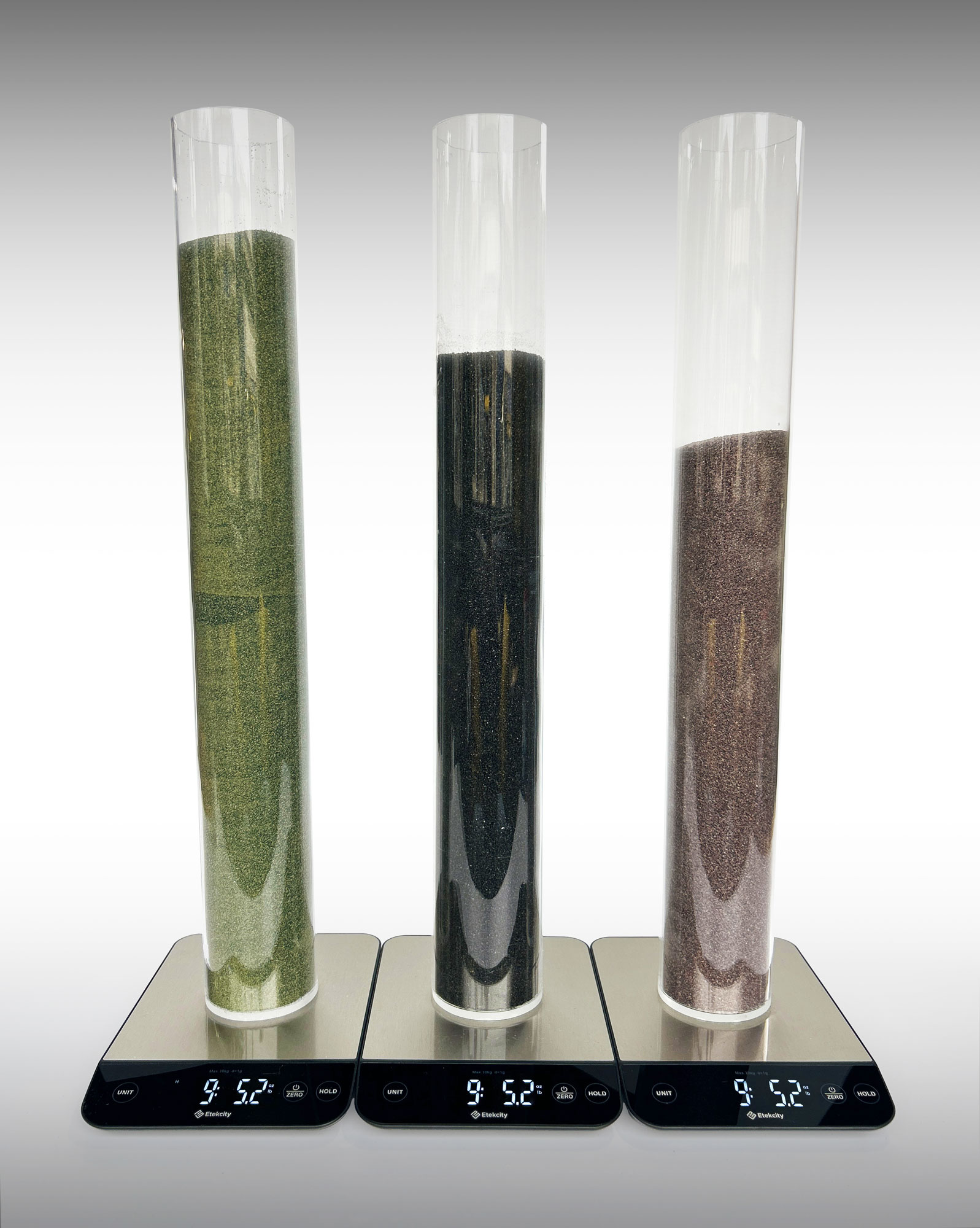 From left to right: Green Diamond, Copper Slag and Garnet