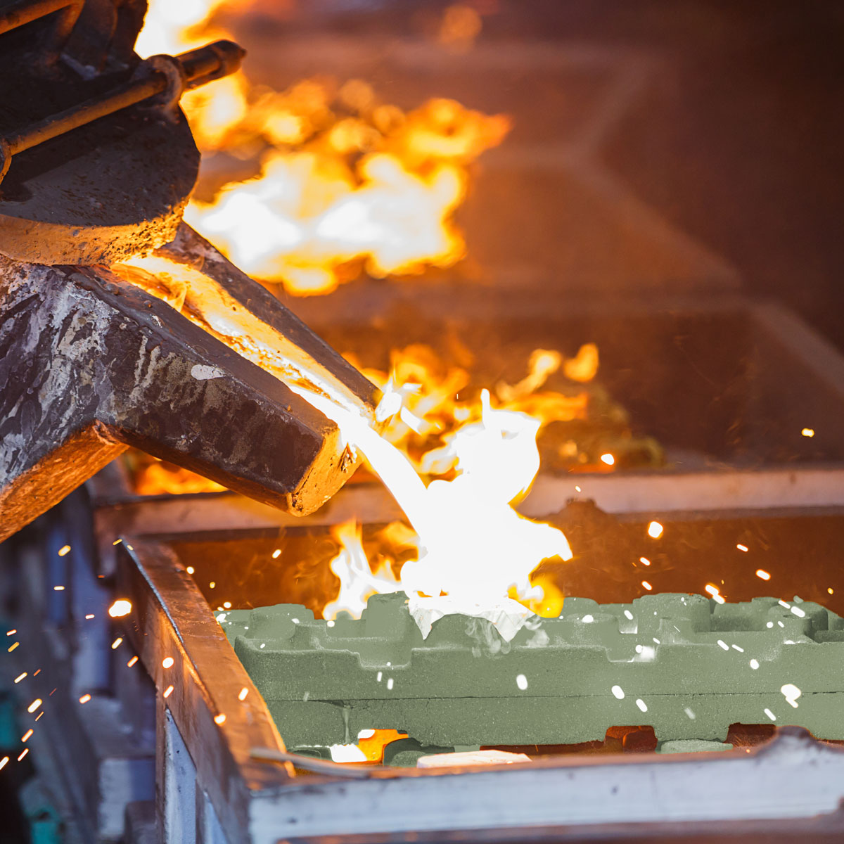 In non-ferrous casting (aluminum, magnesium, brass, bronze), molds with greater insulating properties help retain heat in the molten metal longer. Because these alloys are poured at lower temperatures than iron or steel, maintaining metal temperature during filling is critical for avoiding defects. Our synthetic olivine green sand systems provide a more stable thermal behavior, consistent mold packing, and predictable heat retention for a more controlled casting process.