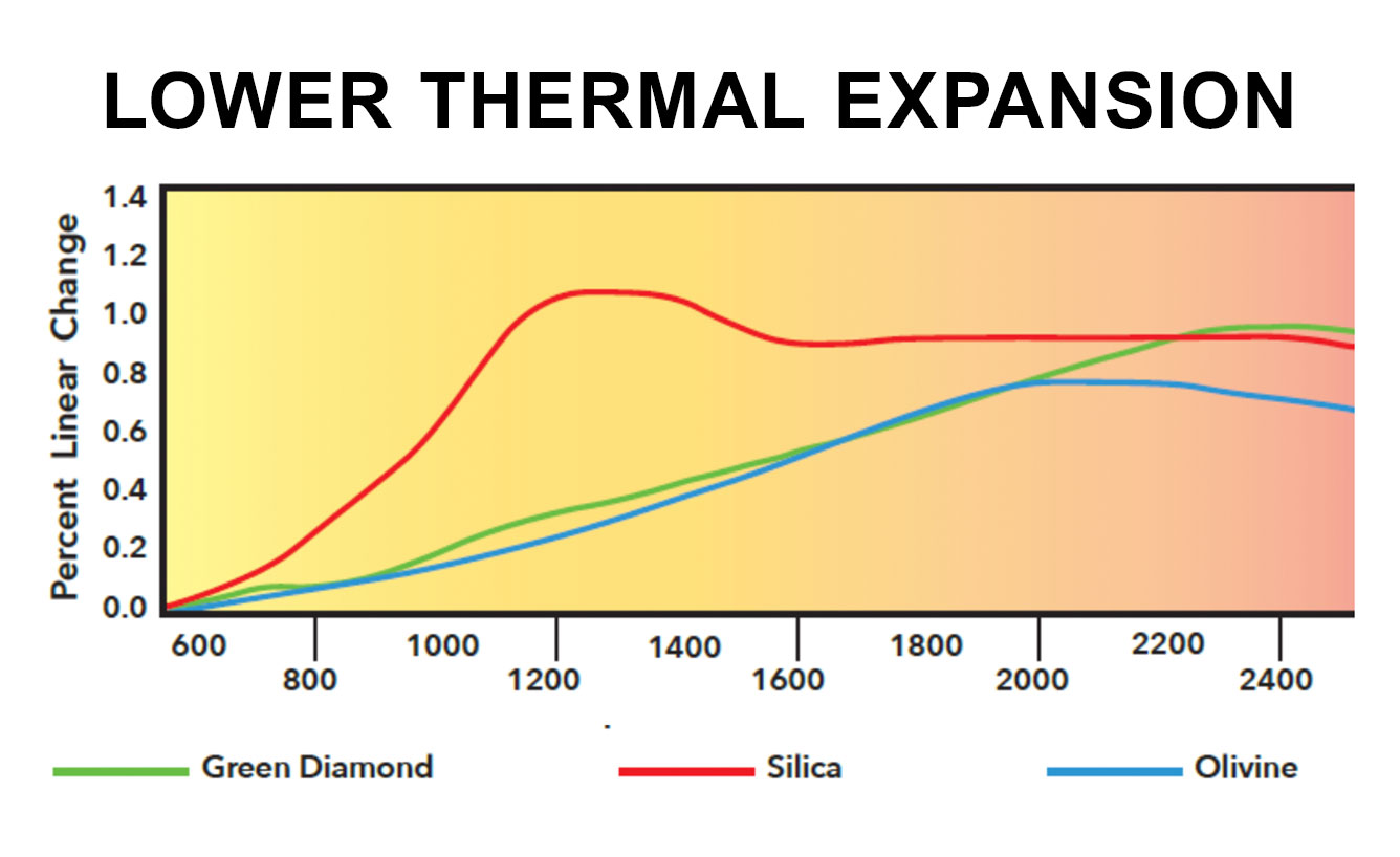 With low thermal expansion, low thermal conductivity, no loss on ignition, and greater insulating values, Green Diamond is a high-performance alternative that improves casting quality while lowering operational costs from the molding line through the finishing room.